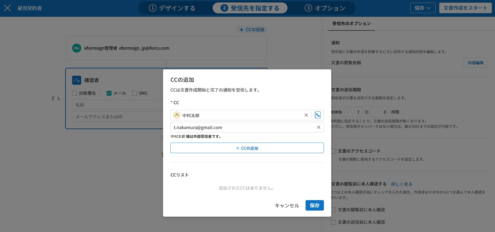 • 外部受信者のCC指定可能
