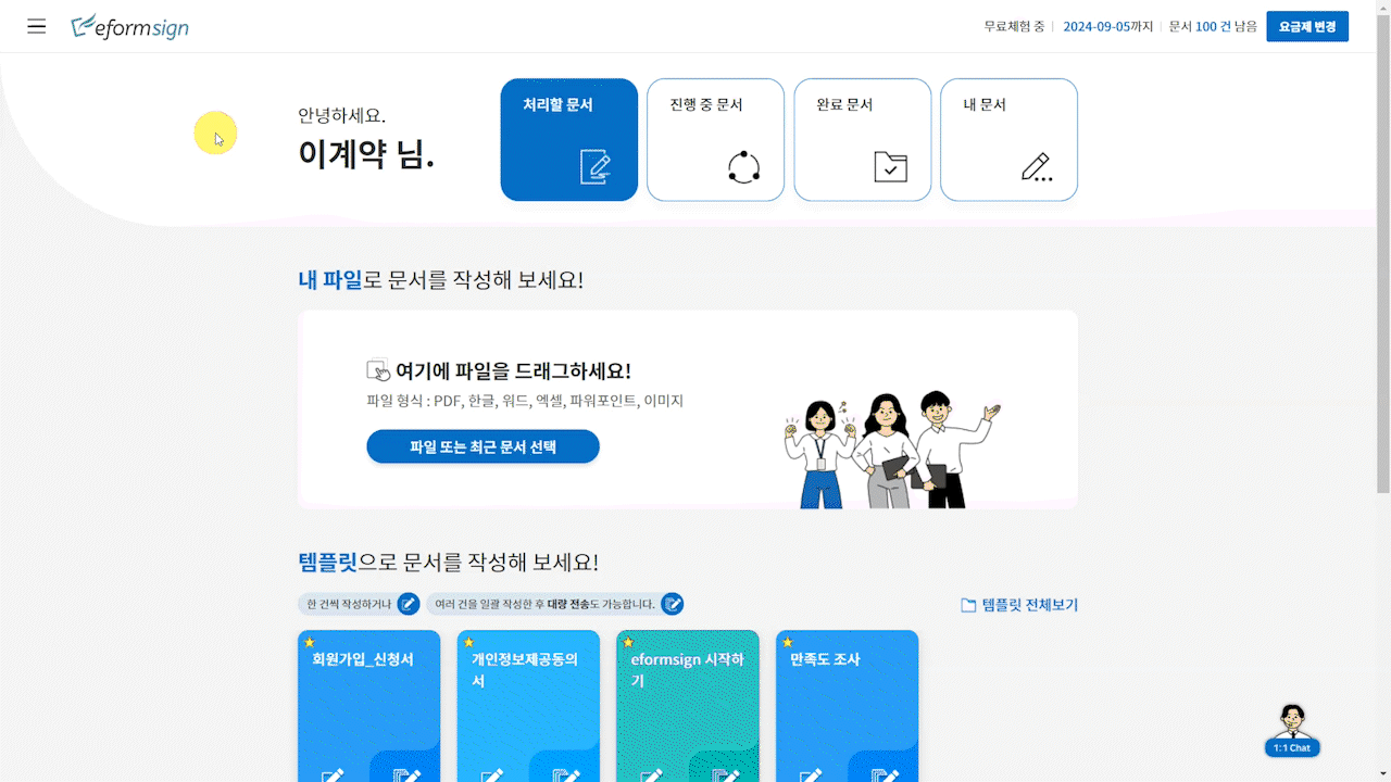 - 완료를 클릭하면 이폼사인에 로그인됩니다.