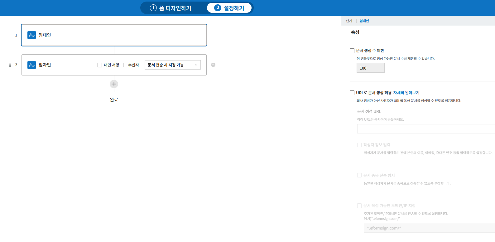 3. 전자계약서 입력 항목을 보기에 앞서 자동 설정된 [서명 참여자] 를 검토할 수 있어요. 예를 들어 임대차계약서의 경우, AI비서가 임대인과 임차인을 구분하여 서명 참여자를 자동 지정했어요!