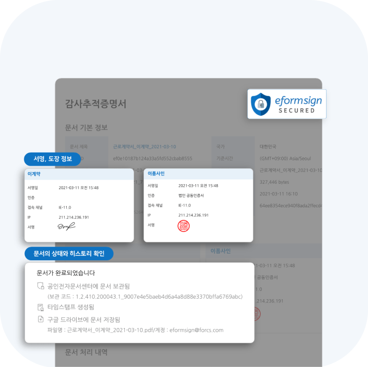 • 서명 일시, IP, 브라우저 정보 등 메타데이터 자동 기록