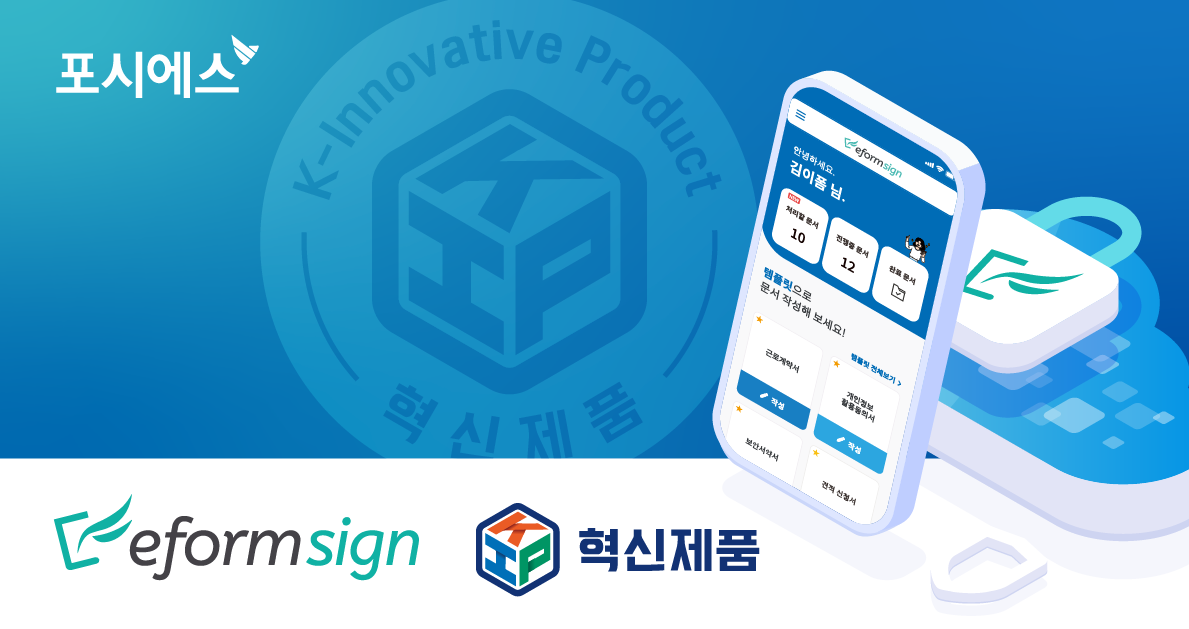 포시에스 이폼사인이 업계 최초로 우수연구개발 혁신제품과 디지털서비스 혁신제품을 동시에 획득하는 쾌거를 달성했습니다. 하나의 솔루션으로 구축형과 클라우드형 두 분야에서 동시에 혁신제품 지정을 받은 것은 이폼사인이 업계에서 유일합니다.