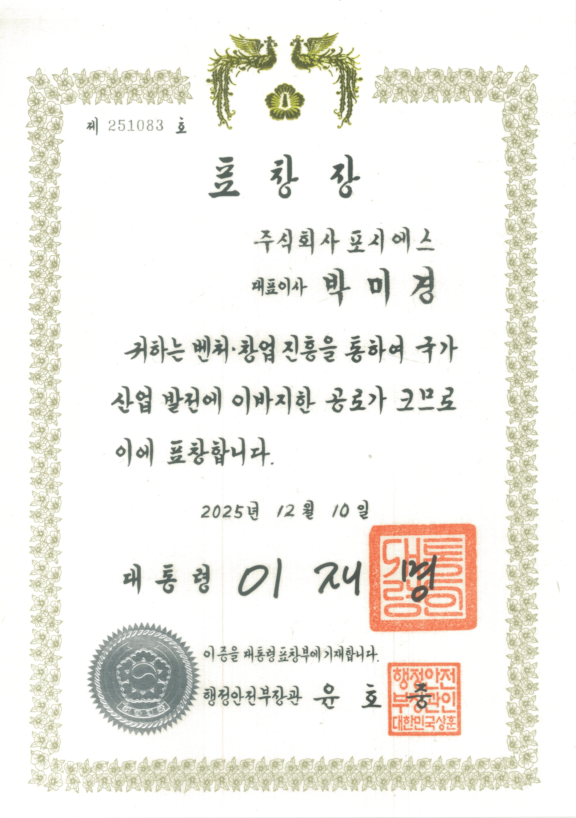 🏆 포시에스, 벤처창업진흥유공 대통령상 수상!