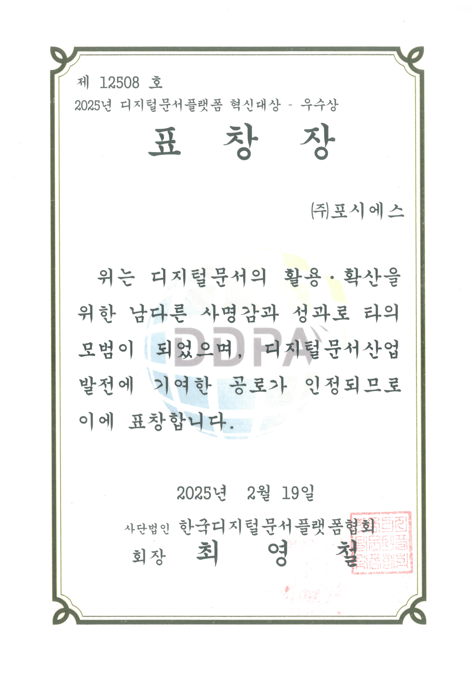 🏆 포시에스, 디지털문서플랫폼 혁신대상 우수상 수상!