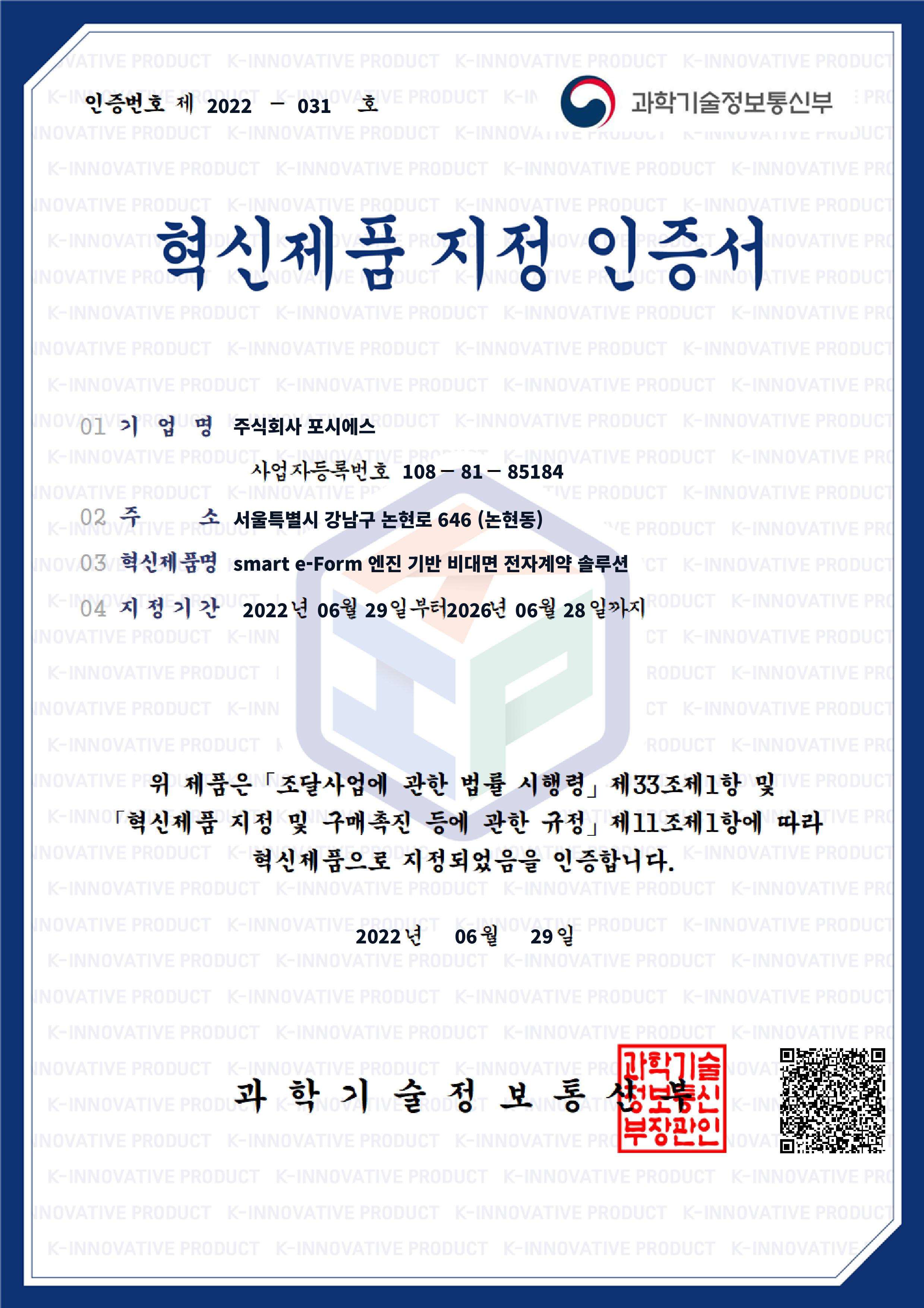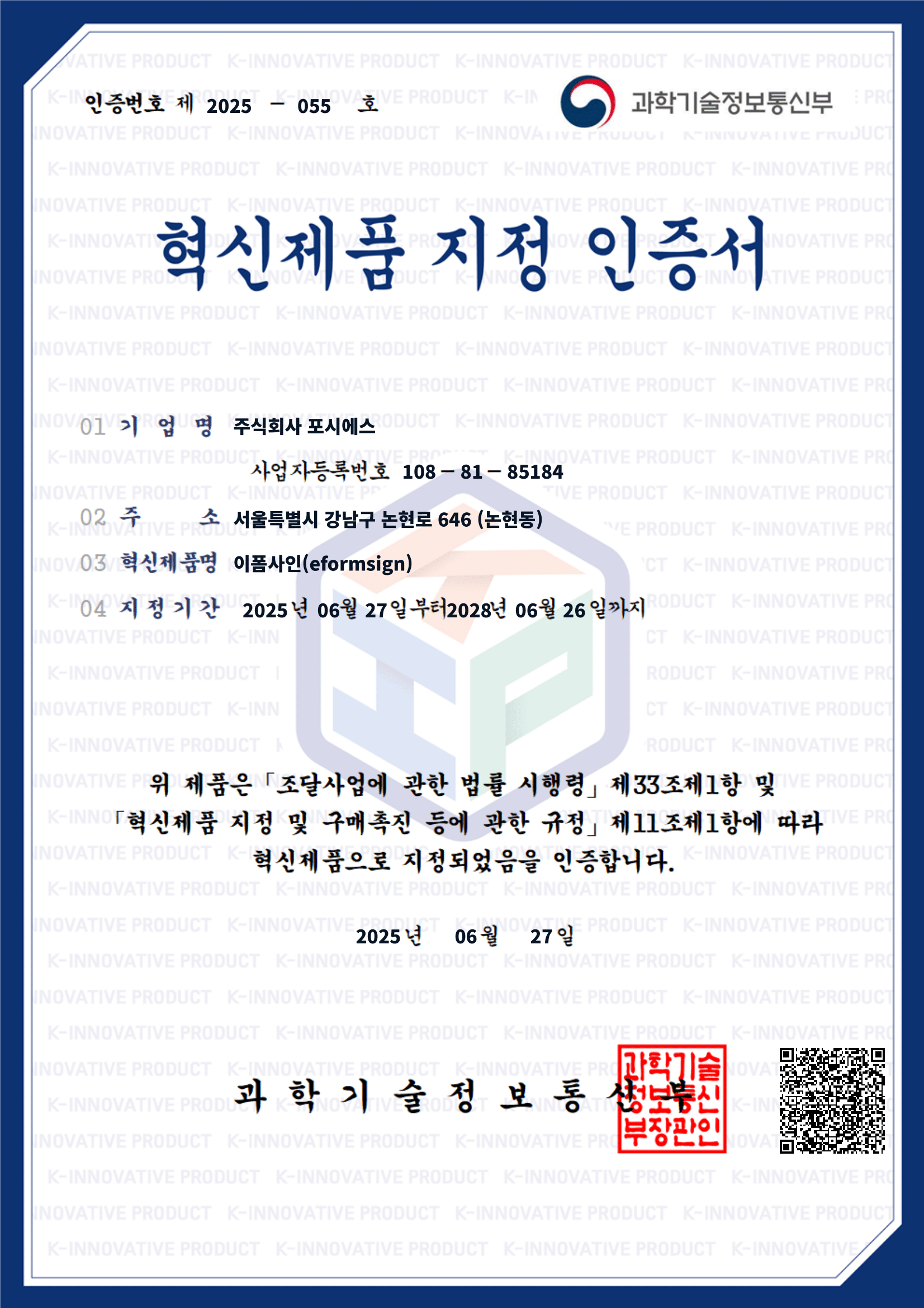 🥇 이폼사인, 업계 최초 정부 혁신제품 동시 지정!