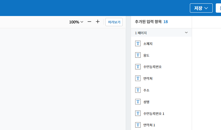 4. 마지막으로 [추가된 입력 항목] 은 AI가 자동으로 배치한 전자계약 입력 항목인데요. 근로계약서에 필요한 작성 항목이 잘 들어갔는지 검토, 수정하면 간편한 근로계약서 완성! 근로자에게 서명을 요청하면 됩니다😎