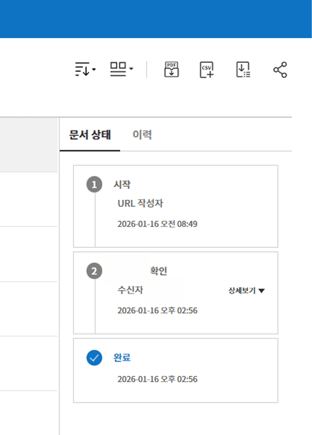 진행 중 문서함에서 근로계약서 처리 현황을 체크하고, 완료 및 일괄 작성 문서함에서 계약이 끝난 계약서를 한눈에 관리하세요! 이폼사인에서 어떻게 근로계약서를 관리할 수 있는지 알아볼게요🛫