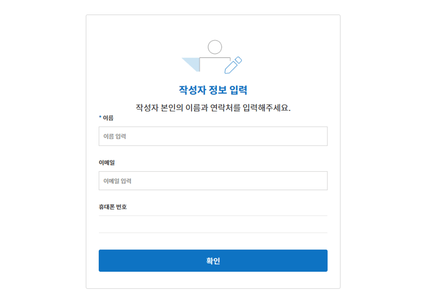 2. [작성자 정보 입력] 에서 서명자의 정보를 추가합니다. 진행하는 서명 당사자의 신원을 더욱 확실히 할 수 있습니다!