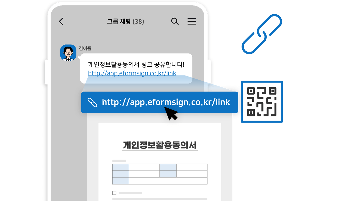 그뿐만 아니라 URL/QR 코드 전송, 알림 커스터마이징, API 연동 등 간편한 기능을 제공하고 있습니다. 이폼사인을 통해 기업은 별도의 인프라 구축이나 시스템 설치 없이도 전자계약을 도입할 수 있습니다.