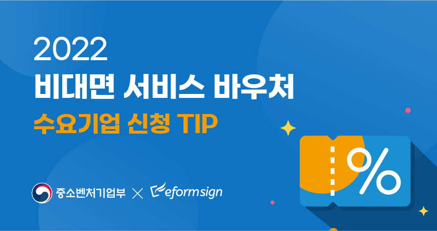 디지털 전환이 필요한 중소기업이라면, 정부에서 제공하는 바우처 지원사업 꼭 놓치지 말고 신청하세요! 비대면 전자계약 서비스 이폼사인 또한, 작년에 이어 올해에도 중소기업의 디지털 전환을 위해 두 가지 바우처 지원사업의 공급기업으로 참여할 예정입니다.